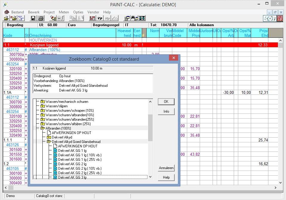 Paintcalc is ontwikkeld in samenspraak met deskundigen op het gebied van schilderwerk en verfsystemen. Daarom sluit het goed aan op de dagelijkse praktijk van het schildersbedrijf. Door middel van een meegeleverde zoekboom worden verfsystemen geselecteerd die compleet onderbouwd zijn met kosten en tijdsnormen voor activiteiten en middelen.