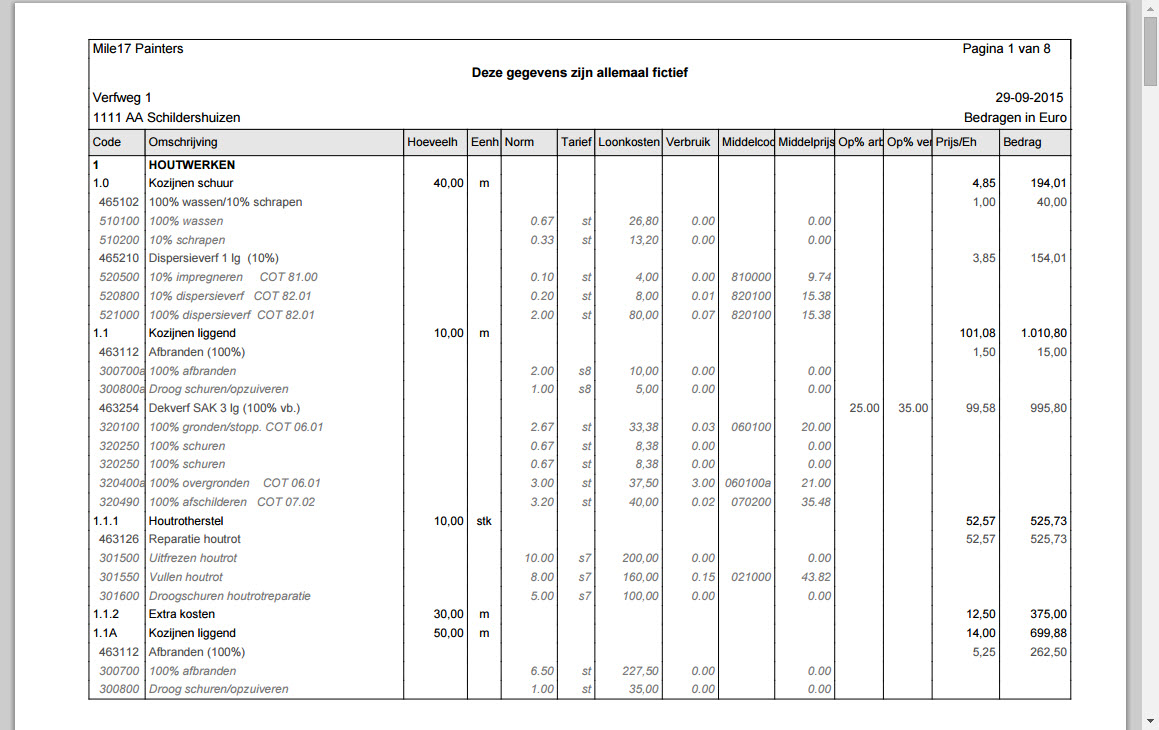 De catalogus die met PaintCalc wordt geleverd bevat prijzen, normen, verfsystemen en diverse teksten voor offerte en voorwaarden. De laatste catalogusversie paintcalc is uit 2016.