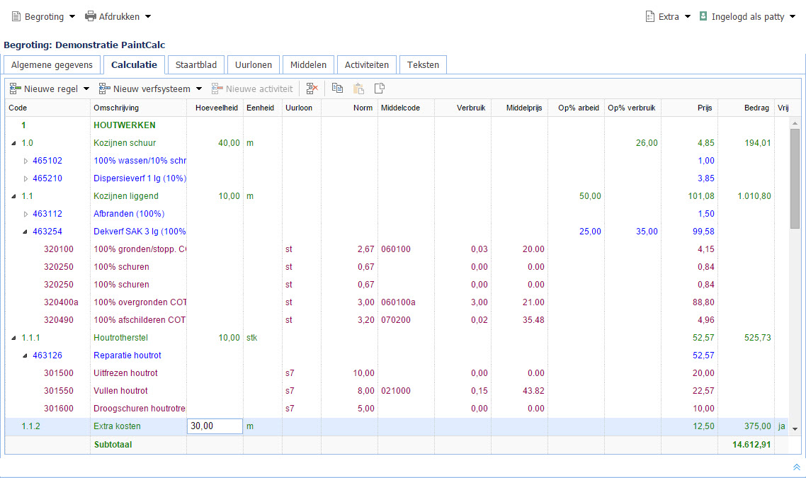 Bestaande en oude paintcalc-begrotingen kunnen ingelezen worden.