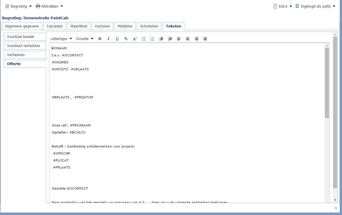Een opvallend kenmerk en gelijk de kracht van PaintCalc is de eenvoud. Het programma is zeer snel te leren, omdat de bediening ongecompliceerd is en toch vele handige functies bevat. Een begroting in PaintCalc houdt niet op bij alleen de calculatieregels en het staartblad; een complete aanbieding bevat meerdere onderdelen, zoals algemene voorwaarden, offerte, verfadvies, bestekteksten. Ook hiervoor biedt PaintCalc nuttige handvatten. Met het systeem worden professionele teksten en tekstbladen geleverd, die u zo in uw aanbieding kunt opnemen.